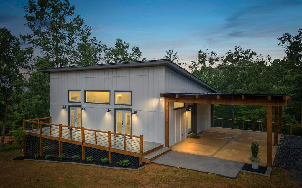 Beautiful modern ranch on 2.7 acres in the heart of Ellijay's mountain country. Light and bright new construction with soaring ceilings and windows to let the sunshine in. The open concept living area includes an entertainer's kitchen, dining area with wood burning stove and living room. The kitchen